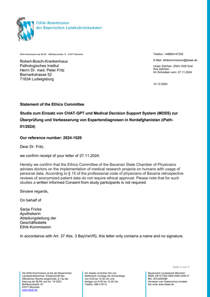 Approval by the ethic Comittee of the Bayerische Ärztekammer 27.022024, Aktenzeichen 1020/2024
