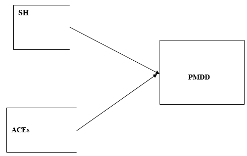 Figure 1. Explains the expected associations between self-harm, Adverse Childhood Experiences, and Premenstrual Dysphoric Disorder among in-school adolescents.