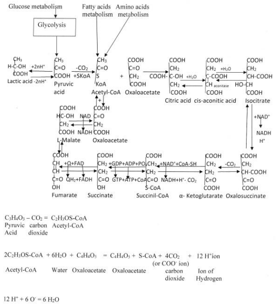 Figure 5: Interaction between anaerobic and catabolic processes and aerobatic processes via Krebs tricarboxylic acids cycle.