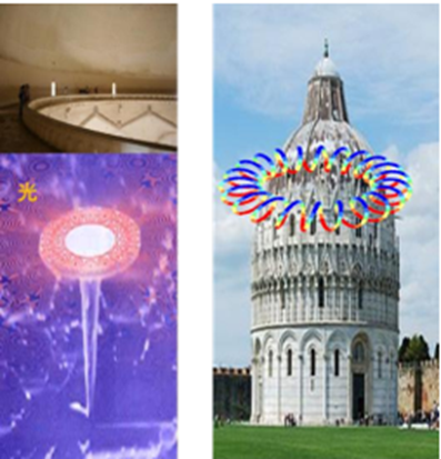 Figure 1 (right) Baptistery of St. John in Pisa, an ideal example for PQR laser of Resonant Double Helix Waves within toroidal WCM cavity.