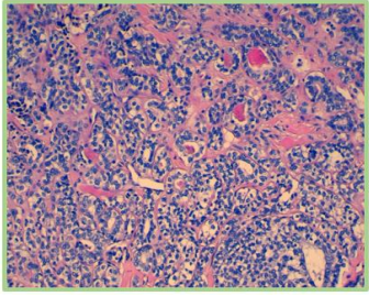 Figure 3: (HE*20) High-grade infiltrating adenoid cystic carcinoma of the parotid gland in a 70-year-old patient.