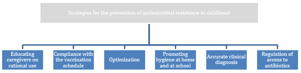 Strategies for Preventing Antimicrobial Resistance in Childhood In the general context of this situation, one of the most important strategies for preventing antibiotic resistance in children is to teach parents when antibiotics are necessary and when they are not. In many cases, infections are viral and tend to resolve on their own, but due to a lack of information, unnecessary treatments are initiated. Recent studies have shown that improving caregivers' knowledge can reduce self-medication and inappropriate use (Messina et al., 2021). Another essential element is maintaining a complete vaccination schedule, since vaccines prevent common diseases that, if complicated, could require antibiotics. Various experimental studies and international organizations recognize that vaccination significantly decreases the burden of infectious disease and reduces the need for antimicrobial medications (Coque et al., 2024). In addition to this, promoting handwashing as a daily routine at home and at school is crucial. It is a simple yet powerful practice that has been key in preventing respiratory and gastrointestinal infections in pediatric settings (Oliveira et al., 2025). Furthermore, avoiding complications through timely medical checkups can prevent unnecessary hospitalizations, where the risk of exposure to resistant bacteria is higher. Prolonged hospital stays have been shown to contribute to the spread of multidrug-resistant pathogens, particularly affecting children (Rosales et al., 2025).