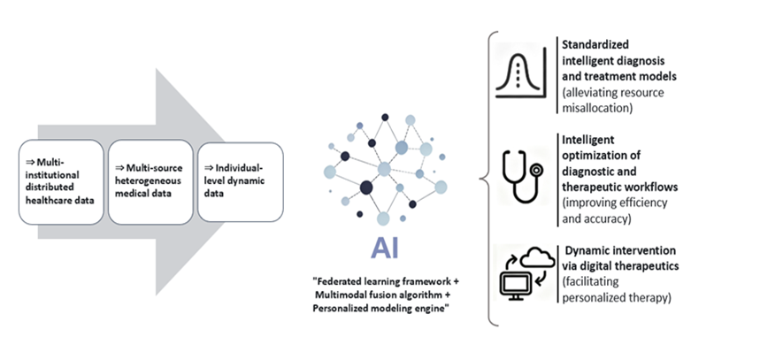 Keywords: clinical diagnosis and treatment; personalized adaptation; federated learning; standardized intelligent diagnosis and treatment models; multimodal data processing technology; multi-source heterogeneous medical data; digital therapeutics