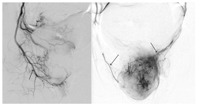 Figure 5: Result of embolization of the right and left uterine arteries.