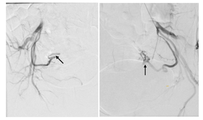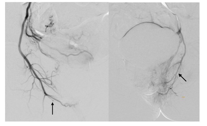 Figure 6: Result of embolization of the right and left internal genital arteries.
