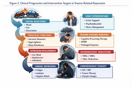 Figure 2: Clinical Progression and Intervention Targets in Trauma-Related Depression.