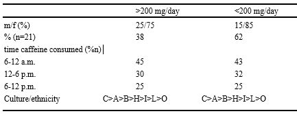 Table 1: Selected characteristics/data from subjects who completed a pre-experimental caffeine survey.