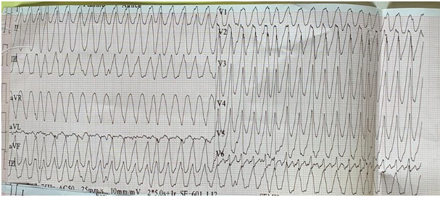 Figure 1: ECG after admission showing a ventricular tachycardia