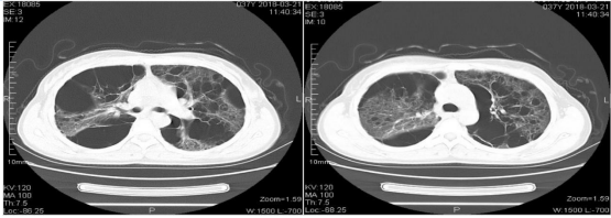 Chest CT at hospital : "1. Diffuse, multiple, variably sized cystic lucencies in both lungs, with thickened lung interstitium and multiple linear opacities. No significant pleural