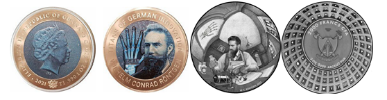 Figure 2. North Korean commemorative coins dedicated to the memory of C.W. Roentgen