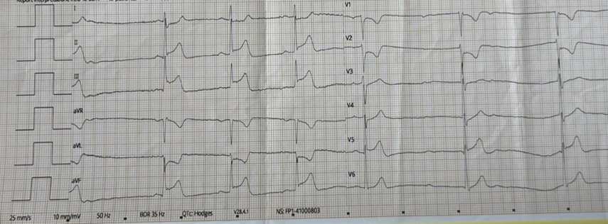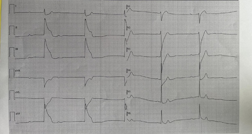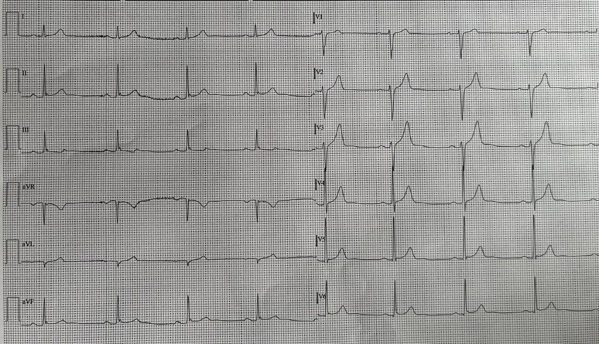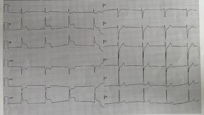 Figure. 1: ECG performed by the Emergency Service at first contact with the patient experiencing chest pain