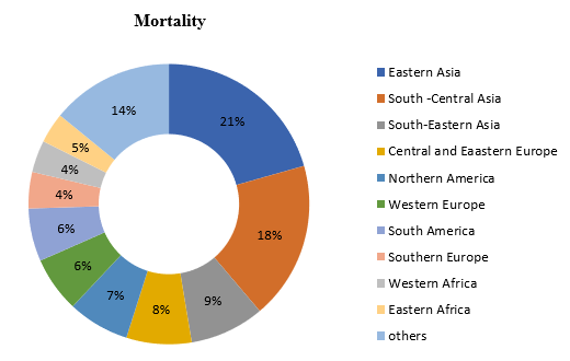 Figure 3: Distribution and death related breast cancer cases world area in 2020