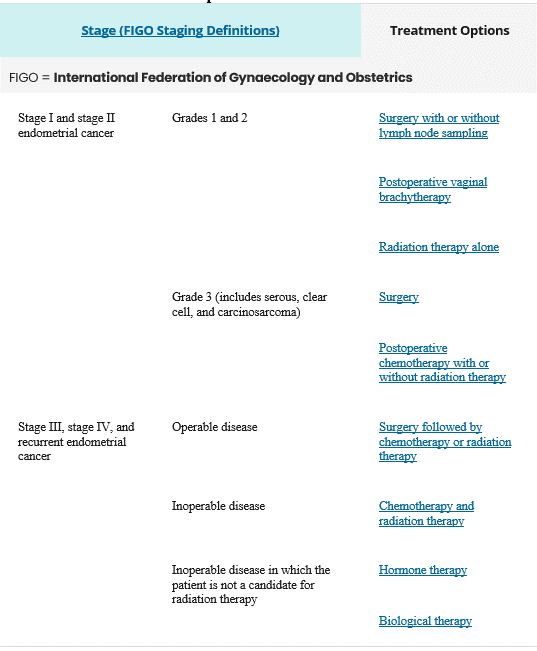 Source: Endometrial Cancer Treatment -Health Professional Version, https://www.cancer.gov/