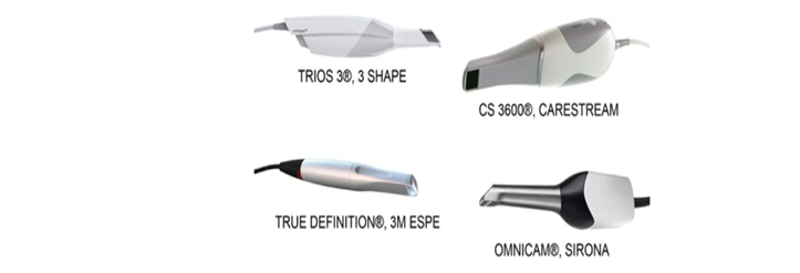 Different intraoral scanners available are Cariescan,Trios 3 (3Shape),CS3600 (Carestream),Omnicam (Dentsply Sirona),TrueDefinition (Dentsply Sirona),iTero Element 5D (Align Technology),Shining 3D Aoralscan Elite