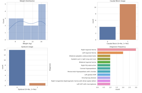 Analysis between patients who received O2:N2O and O2: Air: was done by using the numerical encoding of 0 for O₂: N₂O group and 1 for O₂: Air group. The O₂: N₂O group exhibited a increase in diameter till the culmination of anesthesia protocol (D1 to D4). However, the overall trend appeared to be more stable in comparison to the O₂: Air group. This group showed a steeper rise, between the time points from D1 to D3, and thereafter it exhibited a modest decrease in TVD at the time of culmination of anesthesia, just prior to extubation (D4) (Figure 5). Interestingly the O₂: Air: group demonstrated greater fluctuation in ventricular size, with a notably larger increase at the time of skin closure (D3).