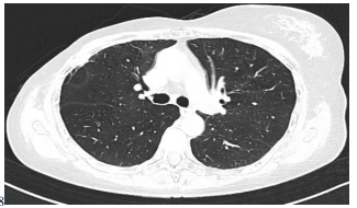 One month later patient underwent to thoracic Hight Resolution Computed Tomography (HRCT) scan that showed a single node localized in right intercostal space (Figure 1).