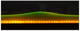 In physics and mathematics, a soliton is understood as a single, solitary wave traveling alone, caused by so-called nonlinear effects in matter. It can be imagined as a shifting increase (or decrease) in the density of matter. Such waves can propagate in a wide variety of media and are known for their stability. Once excited, a soliton travels without changing shape over long distances. Unlike linear waves, a soliton does not change its speed or shape upon interaction with another soliton. Interference does not occur. It overcomes it and returns to its original shape after the collision (Hirota (2004).