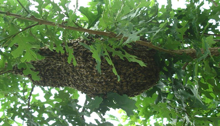 Figure 4: A swarm of bees that has formed on a tree.