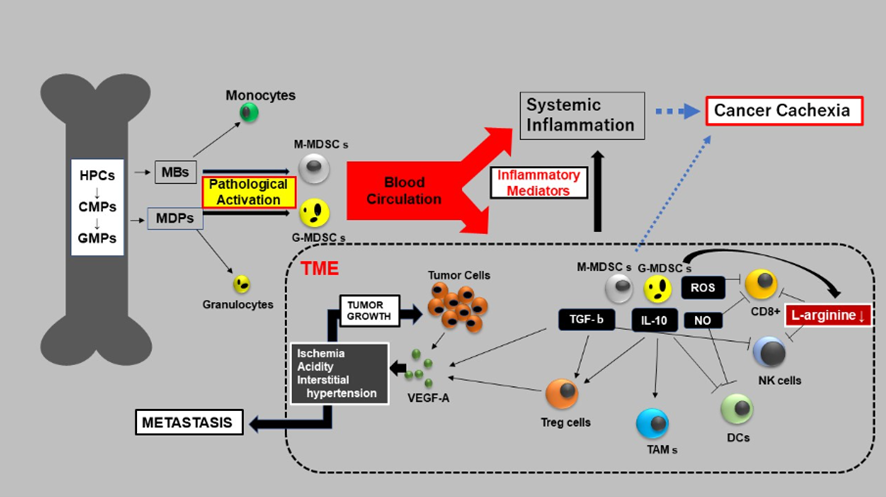Cancer cachexia, immunosuppression, and MDSCs (Figure 2)