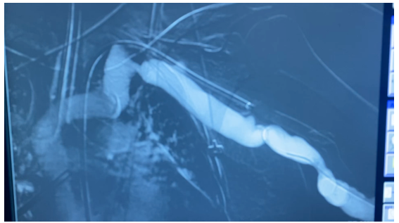 Figure 5: Postoperative image showing covered self-expandable Merit Wrapsody 8x125mm Merit Wrapsodyâ