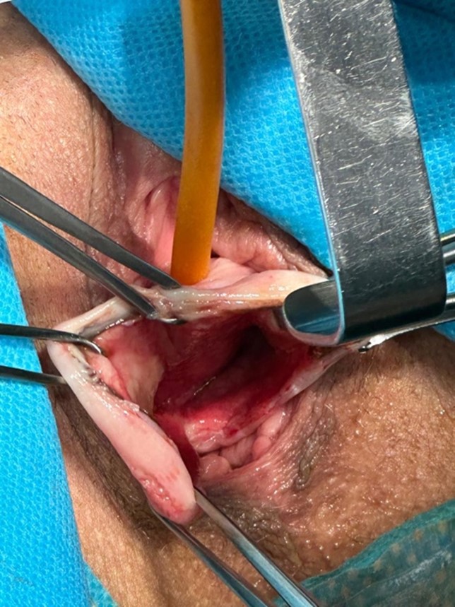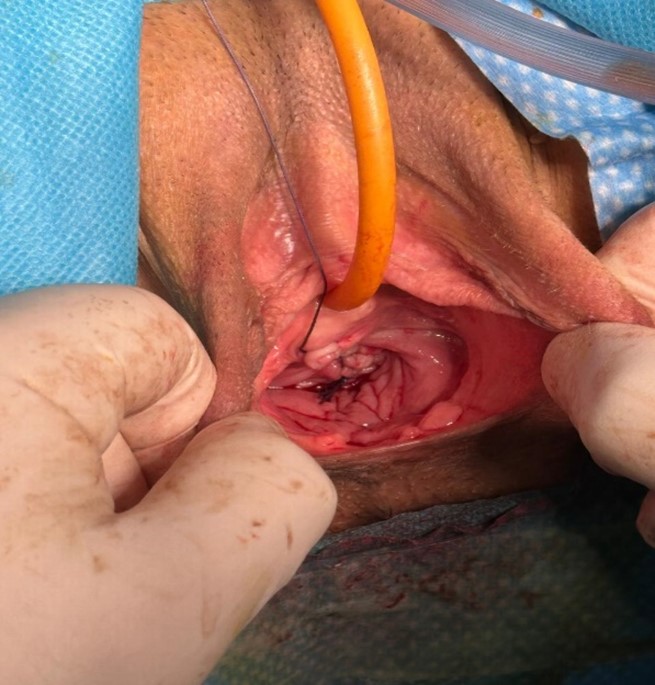 Image 3: Closure of the anterior vaginal wall with continuous vicryl sutures.