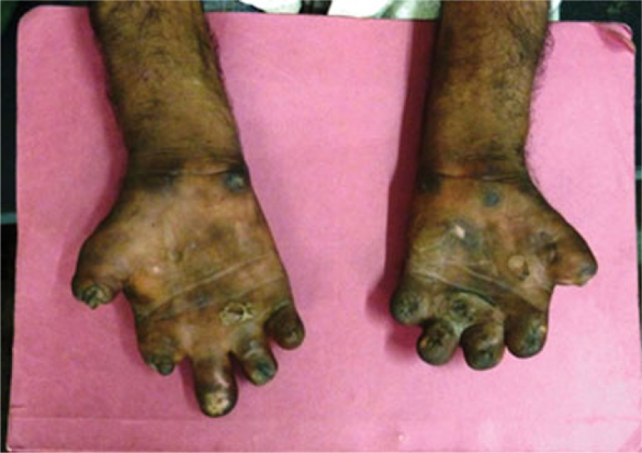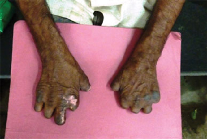 Figure 9: Open in a new tab Advanced deformity causing disability of the hands.