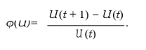 The Gompertz function has been shown to fit the growth curve of chicken heart [13]. Here, we present his derivation of the Gompertz model. Let ϕ (U) be the growth rate defined
