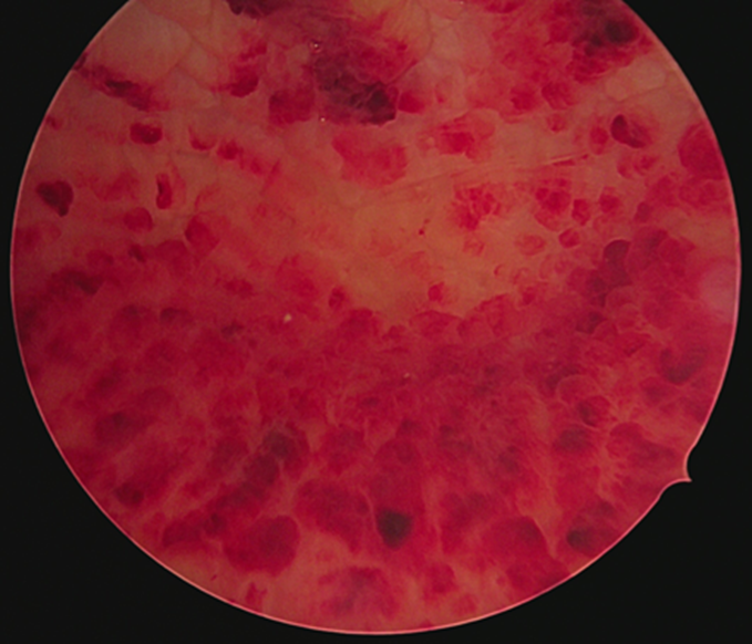Figure 1: Diagnostic cystoscopy with erythematous and edematous bladder mucosa