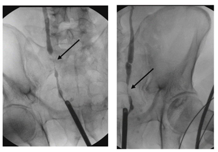 Figure 2: Retrograde ureterography showing bilateral distal ureteral stenosis