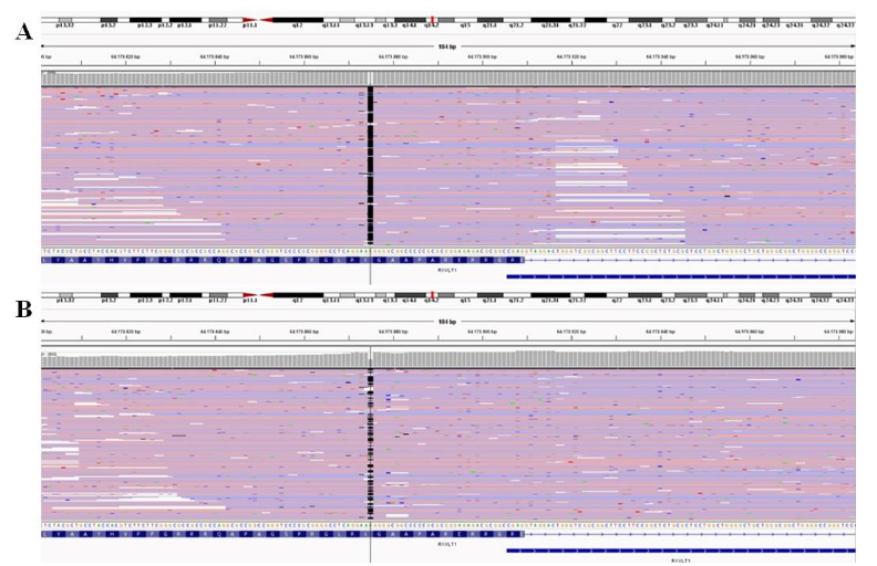 Figure 3: Intergenomic variations of the TMEM5 mutated family. A is for three siblings. B is for their parents.