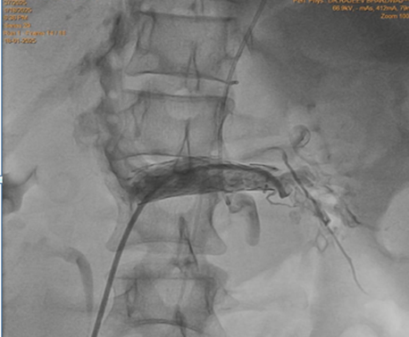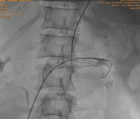 Figure 5: Self expanding stent placed in left renal vein across the superior mesenteric artery crossing.