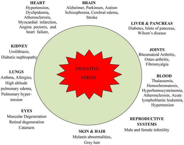 Our judgments reaffirm that oxidative stress plays a major role in the pathogenesis of diversified chronic afflictions, but clinical use of oxidative biomarkers and antioxidant therapies is still developing. Although established antioxidants show biochemical improvements in oxidative stress parameters, translating these changes into dispassionate benefits has been contradictory, possibly on account of bioavailability issues and lack of patient compliance [18,24].