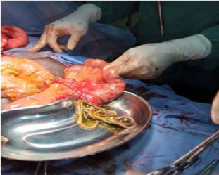 Figure 2: Displays bolus of worms seen at surgery (original).