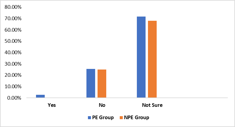 Key: PE- Preeclamptic; NPE- Non preeclamptic; p=0.27