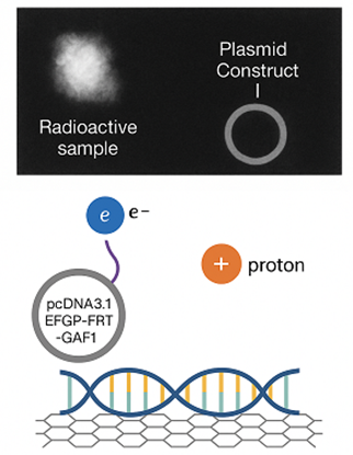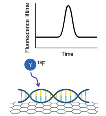 Figure 2: Gamma radiation from 18F decay induce changes in the conformation of DNA linked to graphene, as indicated by changing in fluorescence lifetime.