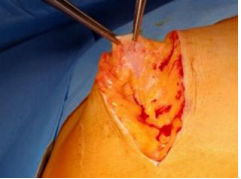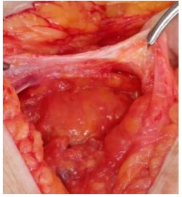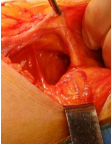 Figure 5: Intraoperative verification of the tension created by approaching the edges of the defect, on the smallest diameter.