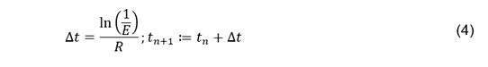 c) the moment when the system exits the current state is determined, ∆t, is determined as a random variable: