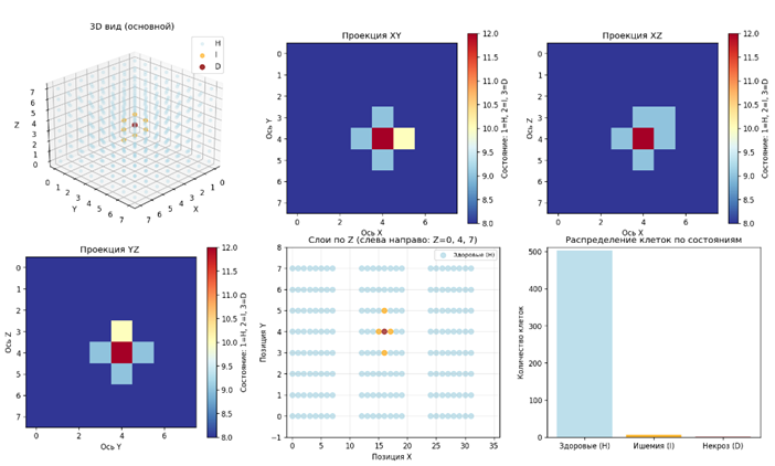 The model has multidisciplinary value. The platform serves as a tool for: fundamental research into microscale mechanisms of ischemic injury; preclinical assessment of pharmacotherapeutic strategies in silico; optimization of biological experiment design through computational hypothesis screening.