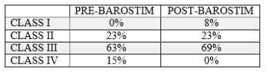 Table 1: Percentage of patients in each NYHA class pre- and post-Barostim device implantation
