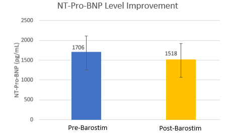 Figure 3: Improvement in N-Terminal prohormone of brain natriuretic peptide (NT-Pro-BNP) from pre and post Barostim device implantation