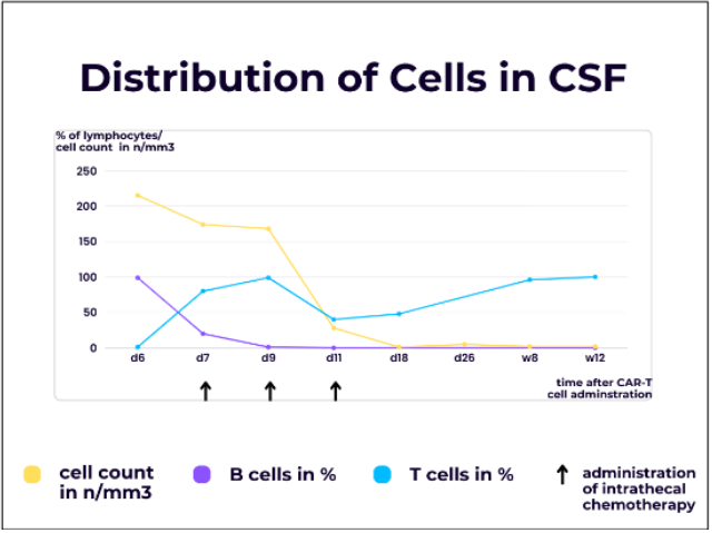 Overall, the data available for the case described is very limited. It remains to be seen how long-term the therapeutic success will be. In principle, the addition of intrathecal therapy in this patient population could represent a possible approach to improving long-term survival. However, well-designed studies are necessary to assess this. A potential negative effect of the intrathecal chemotherapy on the effectiveness of the CAR-T cell therapy cannot be completely ruled out either.