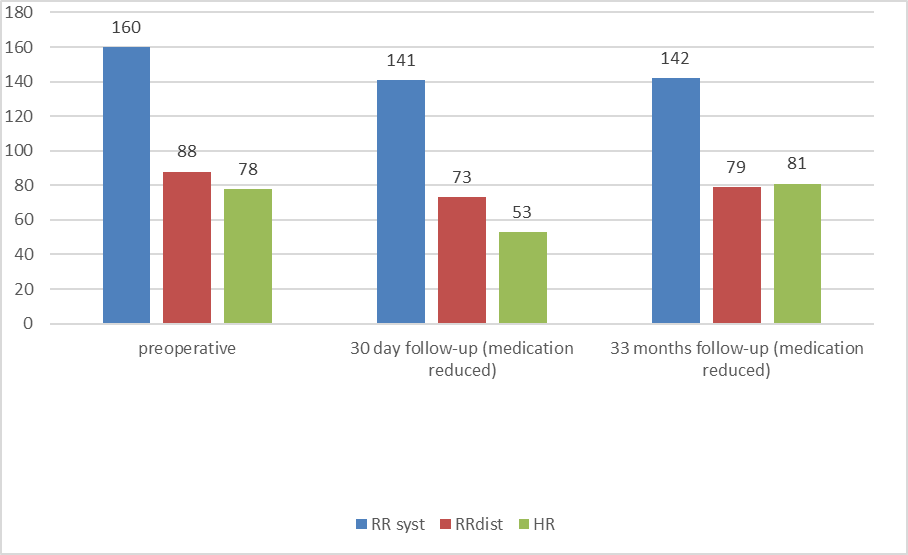 | preoperative | 30 day follow-up (medication reduced) | 33 months follow-up (medication reduced) | |