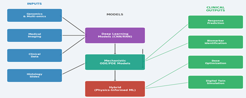 | PK/PD mechanistic models | 7–8 | Clinical trials & regulatory | Model identifiability, sparse data | Chemo scheduling [22, 23] | Deployed / Ongoing |