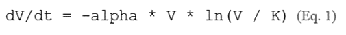 Every model encodes assumptions about the underlying biology. Ordinary differential equation (ODE) models assume a well-mixed, homogeneous tumor population governed by smooth dynamics. The canonical Gompertz model for tumor growth is expressed as:
