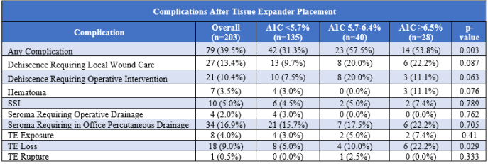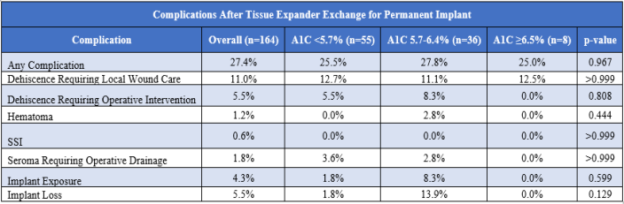 Table 2: Complications by A1C Category After Tissue Expander Placement.