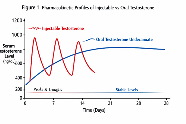 Figure 1: Pharmacokinetic Profiles of Injectable vs Oral Testosterone