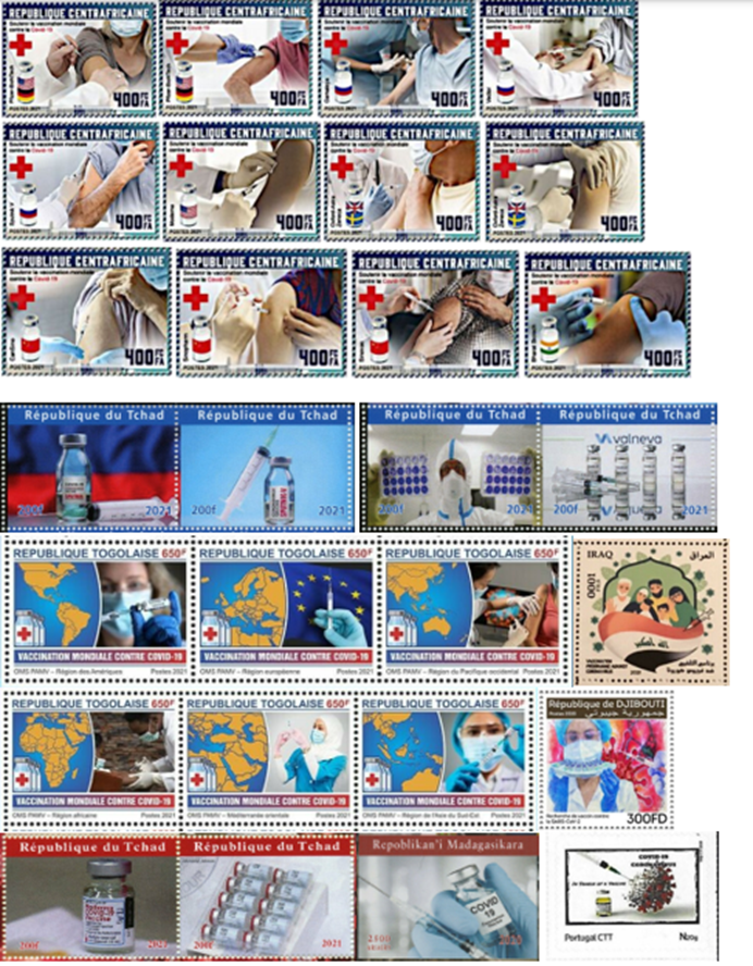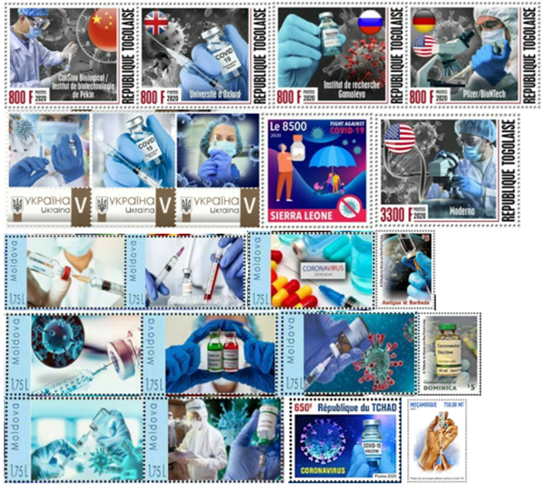 Figure 1. Postage stamps dedicated to COVID-19 vaccinations