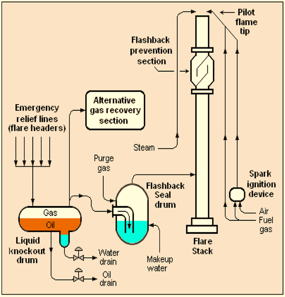 • Flare stack: this includes a flashback avoidance component towards the top (Kayode, 2007; Lees, 2005; Shore, 2006; Smitsvonk, 2001).