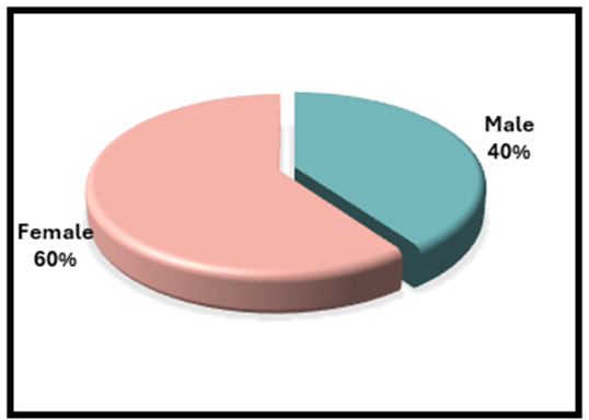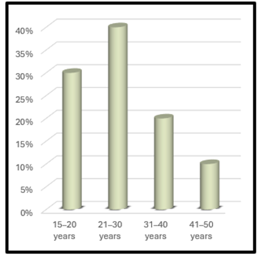 Figure 1 and 2 show the sex and age group of the patients participate in the study. Females counting 60% and males counting 40%, most of the patients were in age group 21-30 years followed by 15-20 years.