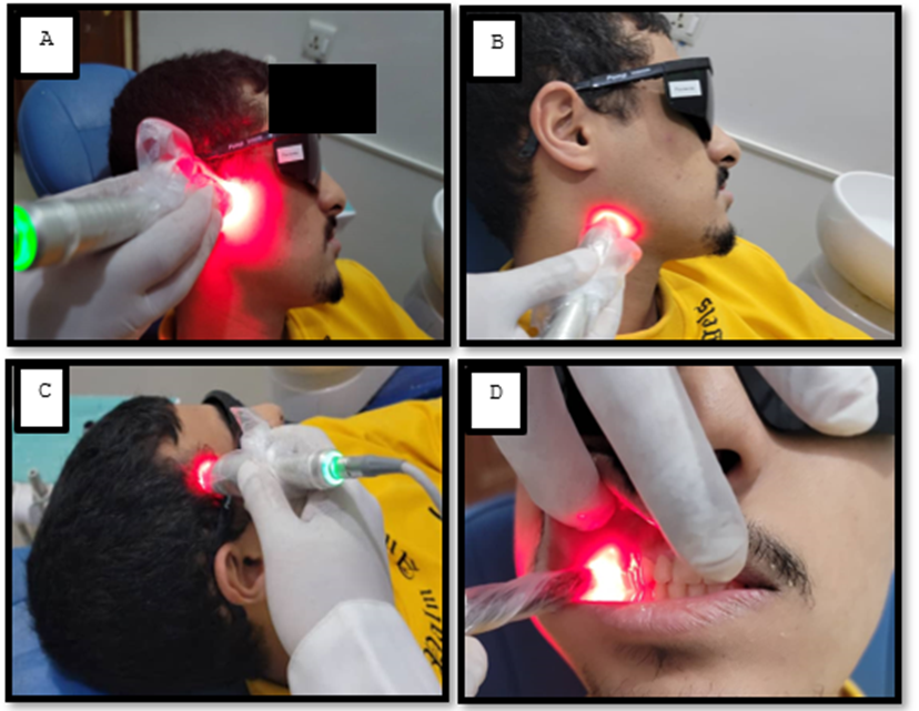 In Yemen, there are recent studies on oral and dental diseases, only one of which addressed the effects of low-level laser in treating myofascial pain dysfunction in the temporomandibular joint in a sample of Yemeni patients [7. However, there were many studies that addressed other topics, such as: the effect of 3D printing in the reconstruction of maxillofacial bone defects [8], the evaluation of fixed prosthetic failure factors in a sample of Yemeni dental patients [9], the sensitivity of Candida albicans to antifungal agents isolated from Yemeni patients with denture-associated stomatitis [10], knowledge, attitudes, and practices related to health care ethics among undergraduate students and recent graduates of the Faculty of Dentistry [11], temporomandibular dystonia: prevalence, clinical and demographic data, and results of therapeutic strategies for hundreds of patients [12], the prevalence of signs of temporomandibular joint disorders in healthy, completely edentulous individuals without symptoms, and the effect of dentures on temporomandibular joint disorders [13], and levels of interleukin-1 beta in the human gingival sulcus: rates. Factors affecting its levels in healthy individuals [14], the effect of intermaxillary fixation on biochemical and hematological markers in a sample of Yemeni adults [15], three-dimensional assessment of the shape of the first cervical vertebra in skeletal malocclusion of Class I and III in Yemeni patients, the validity of the Ponnet analysis in a group of Yemeni population, as well as assessment of the anatomical structure of the sinus canal in the anterior maxilla to avoid surgical complications [16,17,18]. Therefore, the primary objective of this study was to compare the efficacy of low-level laser therapy (LLLT) with an occlusal splint, compared to occlusal splint alone, in alleviating the symptoms of anterior disc displacement. More specifically, the study evaluated the effect of LLLT on pain relief in patients with patellofemoral hypermobility disorder (ADDwR), maximal mouth opening ability, lateral deviation, and temporomandibular joint (TMJ) cracking; and this is one of the first studies in this field in Yemen.